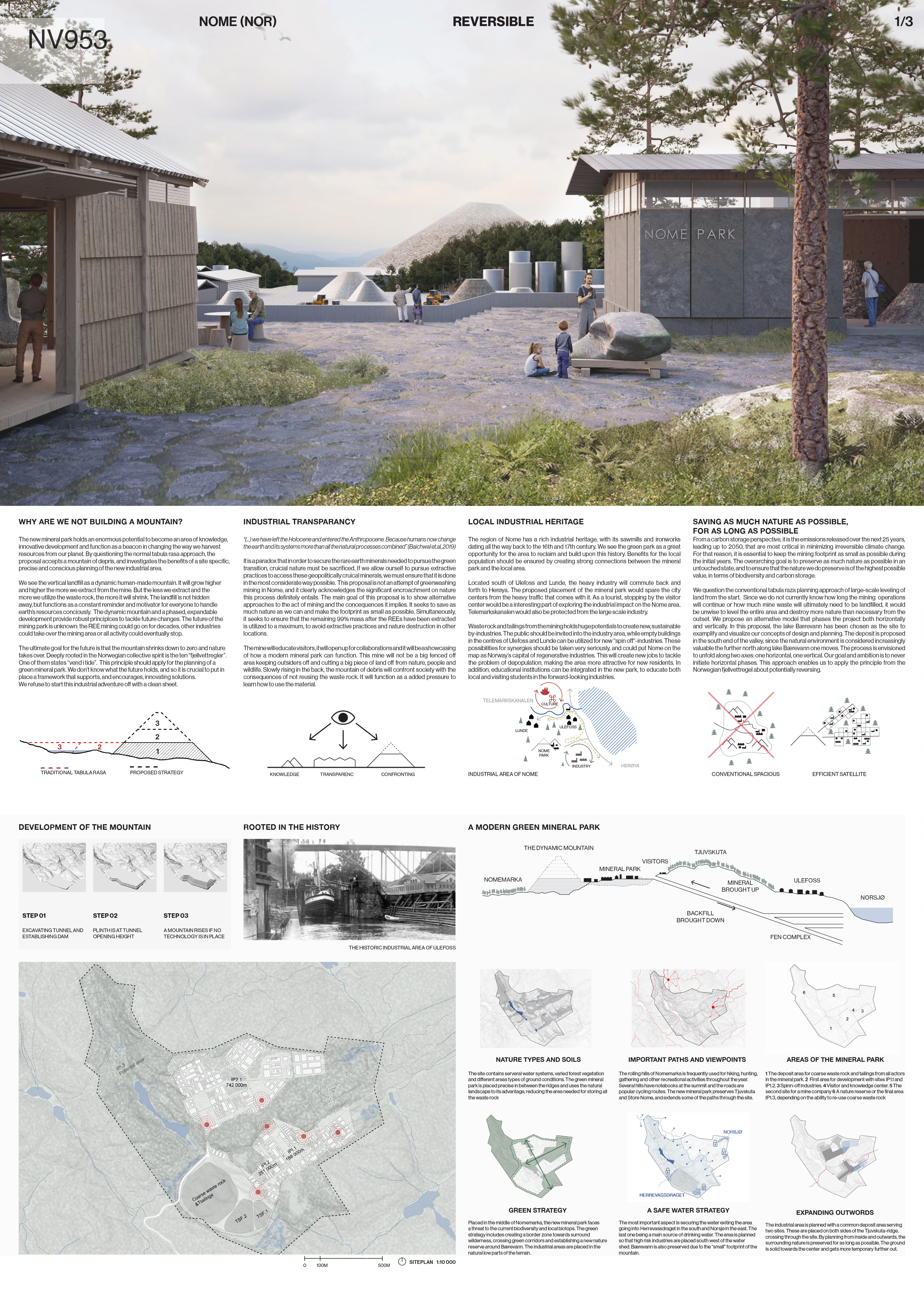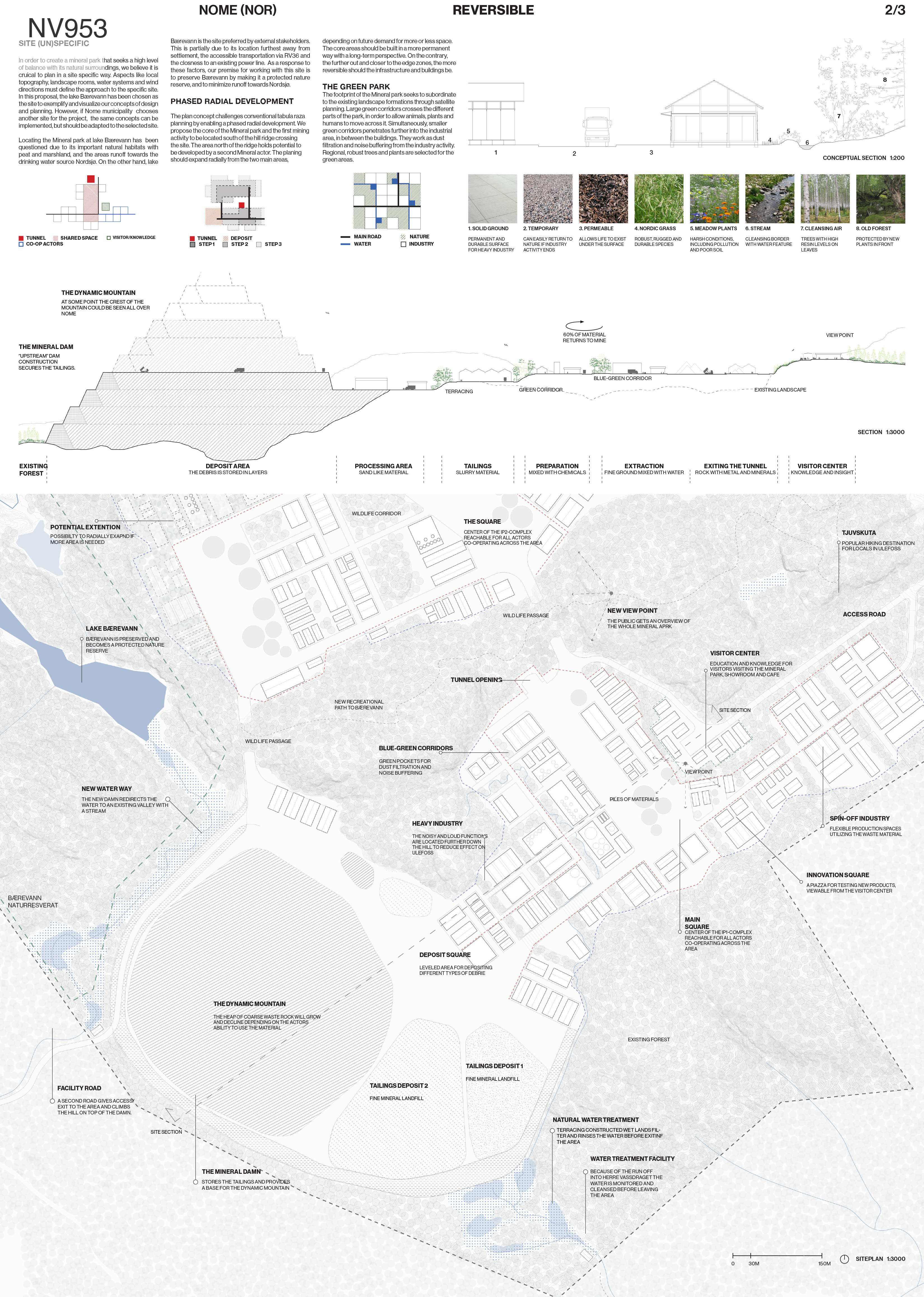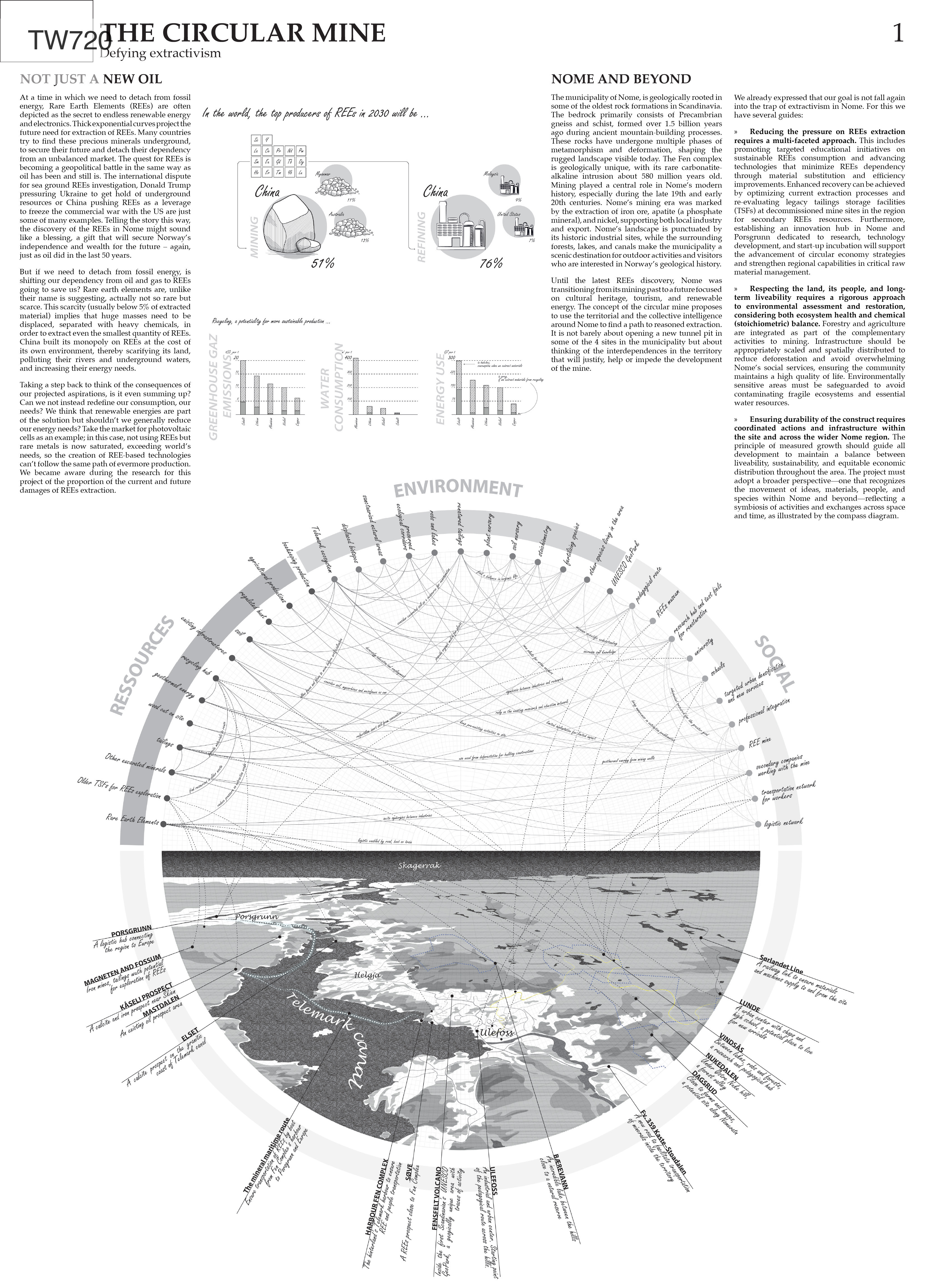 Fensfeltet i Nome huser Europas største forekomst av sjeldne jordartselementer, mineraler som er avgjørende for moderne teknologi og grønn omstilling. Utvinning av disse mineralene har stor geopolitisk betydning for å redusere Europas avhengighet av Kina. Europan 18 stilte derfor unge arkitekter, landskapsarkitekter og urbanister den spekulative oppgaven å utforme konsepter for et "grønt mineralpark" og hvordan den kan tilpasses landskapet på en bærekraftig måte.