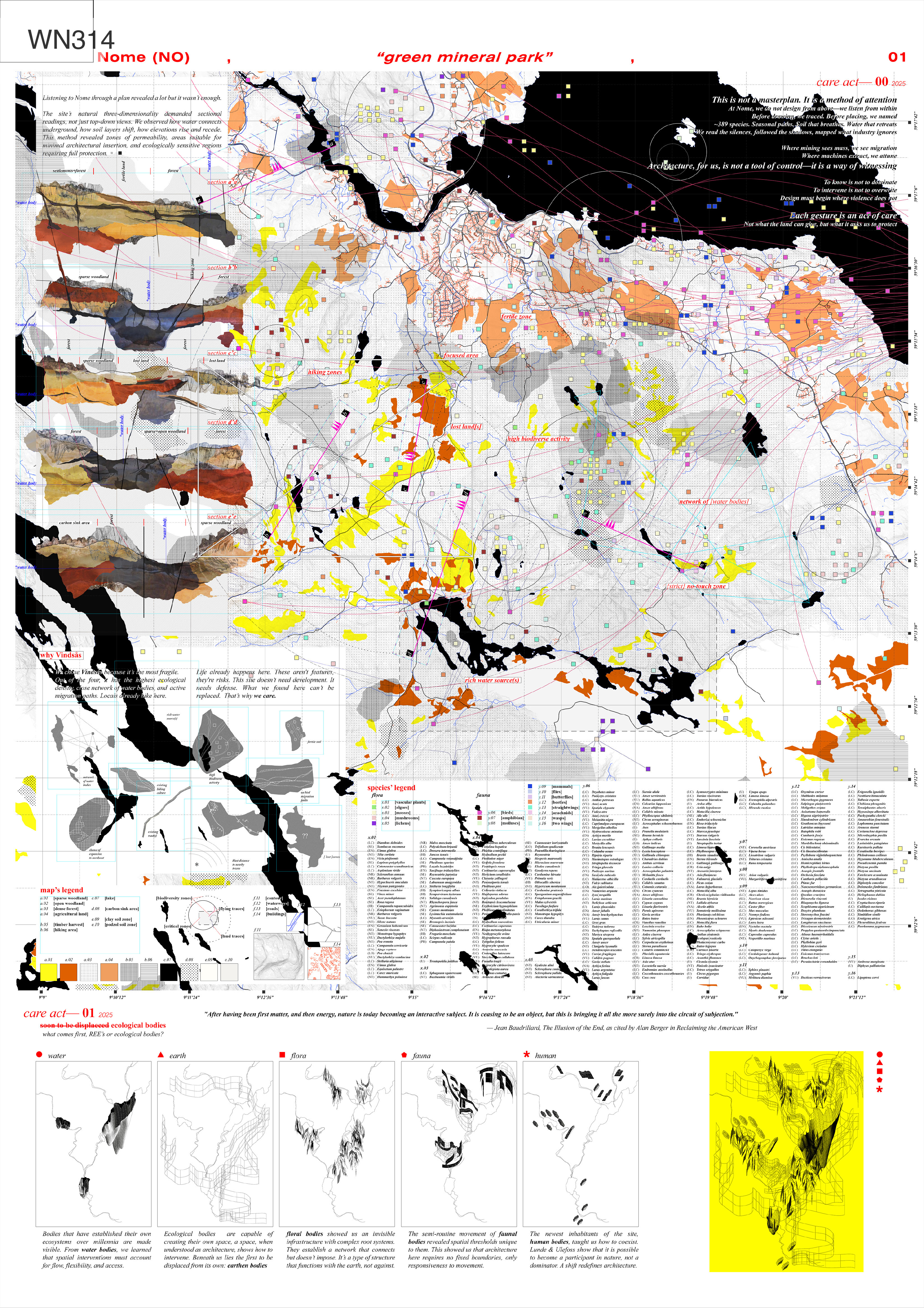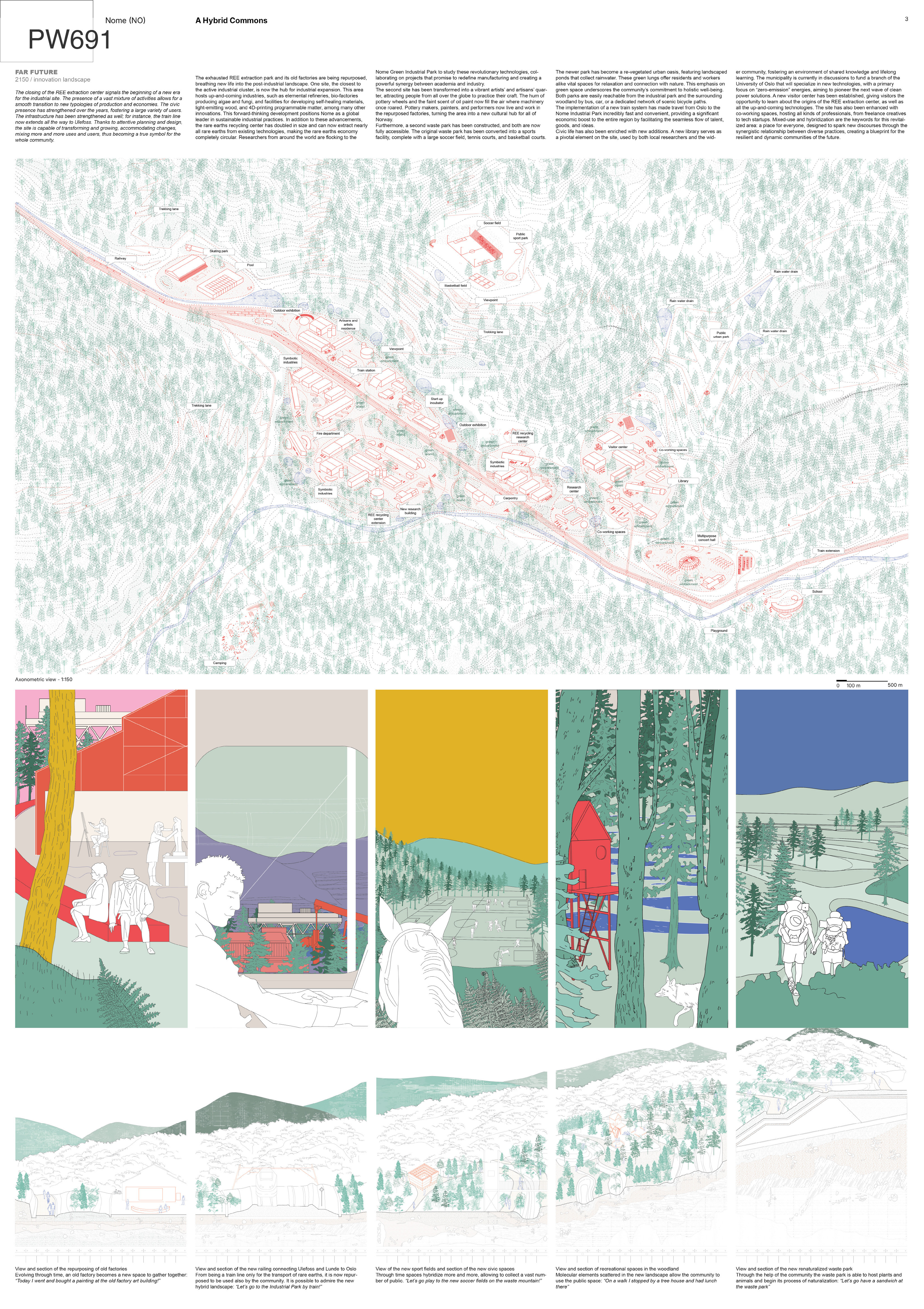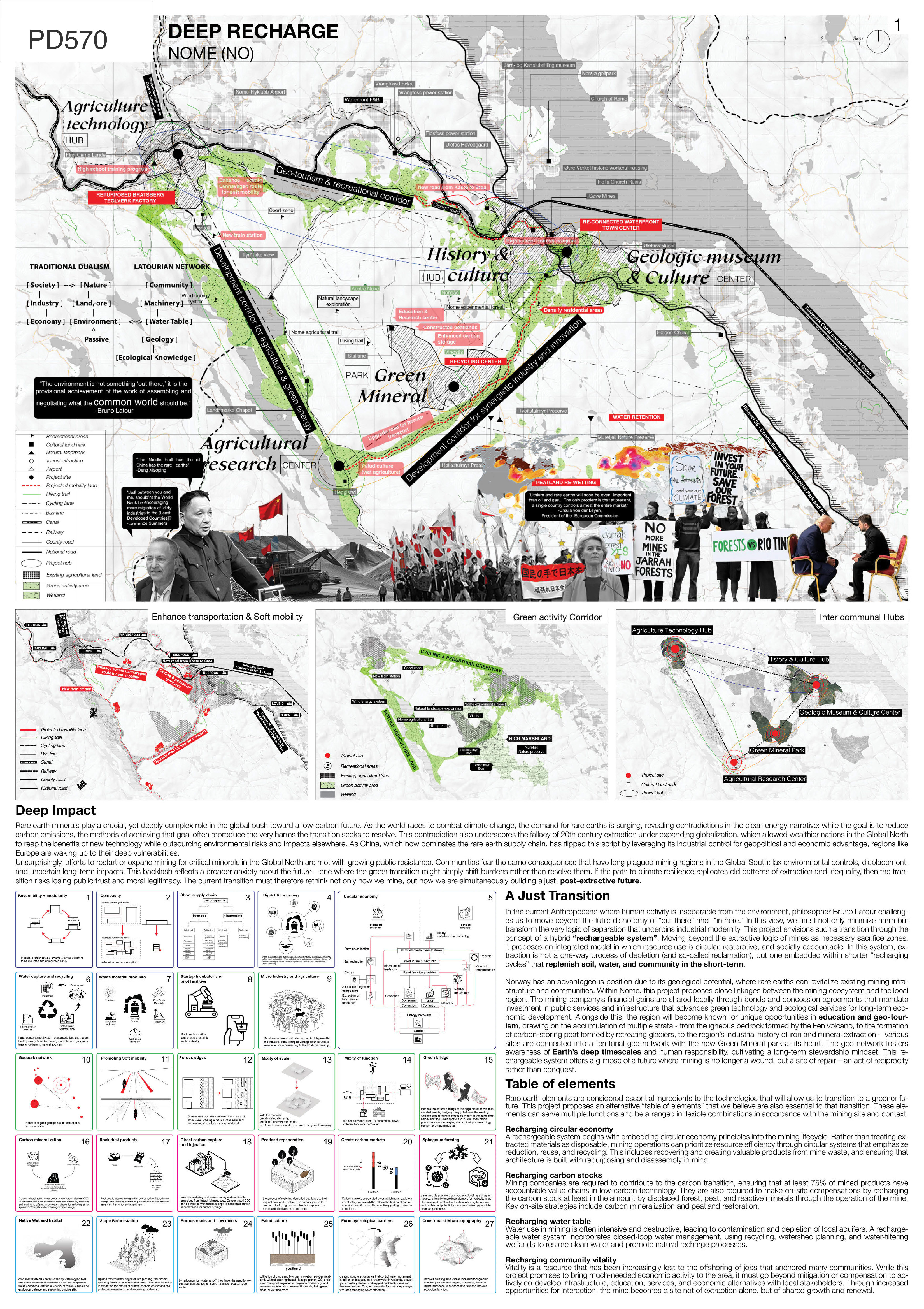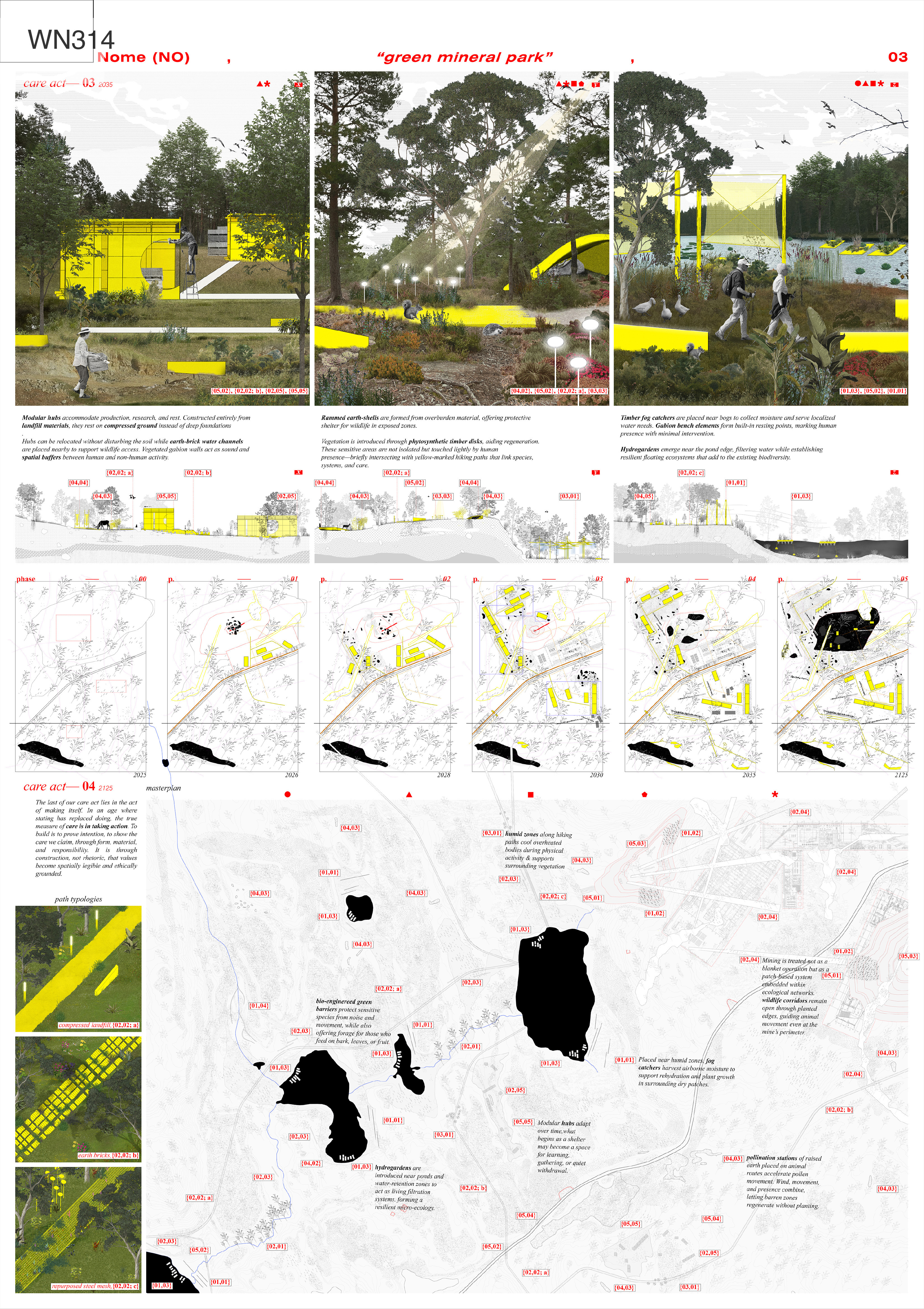 Fensfeltet i Nome huser Europas største forekomst av sjeldne jordartselementer, mineraler som er avgjørende for moderne teknologi og grønn omstilling. Utvinning av disse mineralene har stor geopolitisk betydning for å redusere Europas avhengighet av Kina. Europan 18 stilte derfor unge arkitekter, landskapsarkitekter og urbanister den spekulative oppgaven å utforme konsepter for et "grønt mineralpark" og hvordan den kan tilpasses landskapet på en bærekraftig måte.